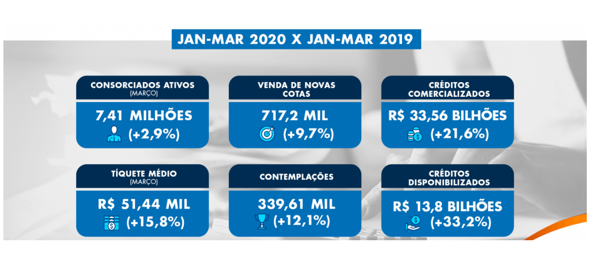 Veja os principais indicadores do Sistema de Consórcios no 1º trimestre de 2020.